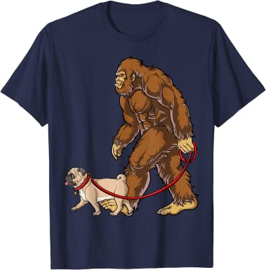 Bigfoot walks his Pug (unisex T-shirt)