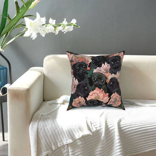 Black pug cushion cover