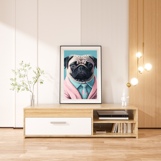 Elegant Pug in a Pink Blazer Poster (the frame is not included)