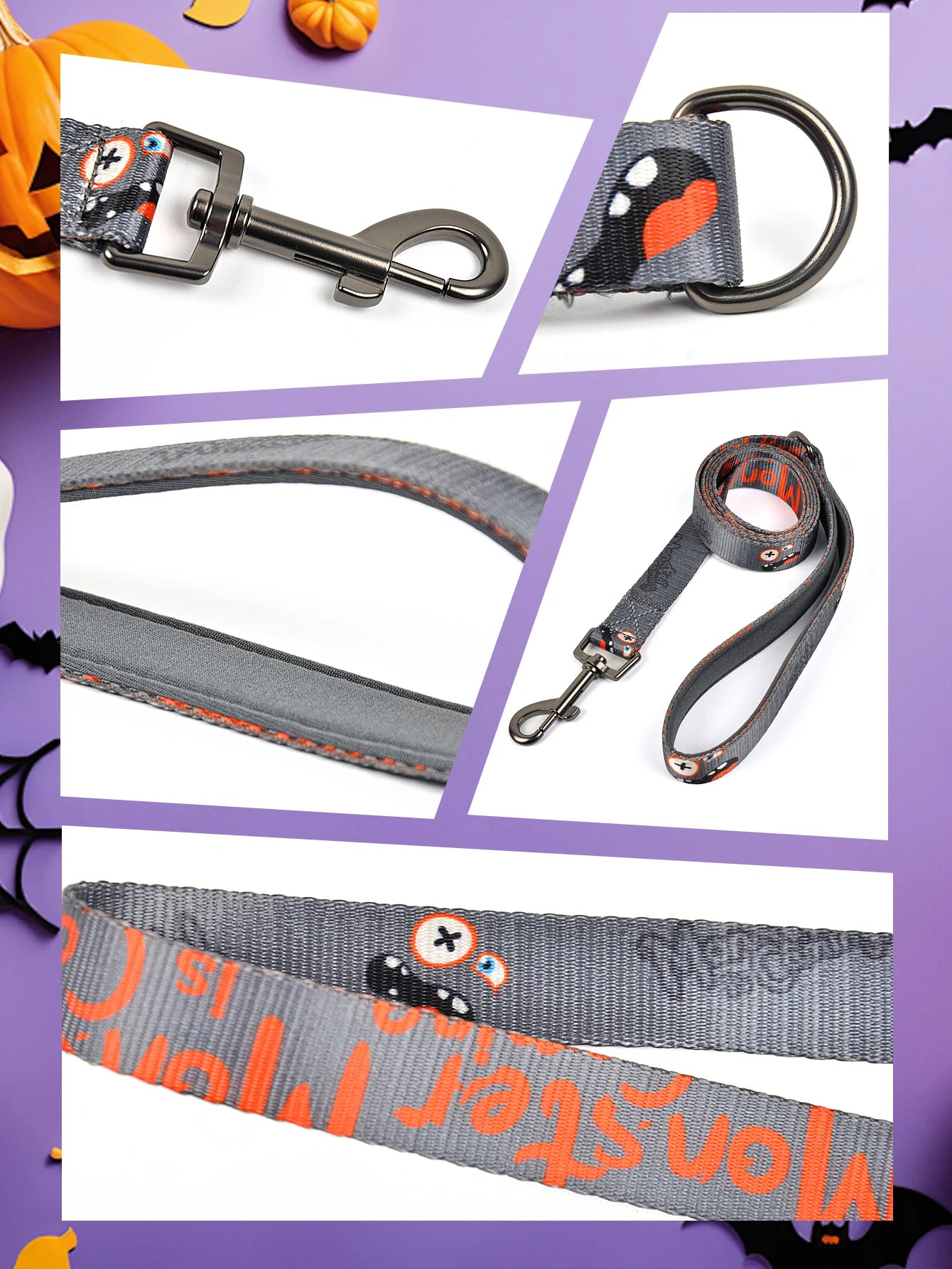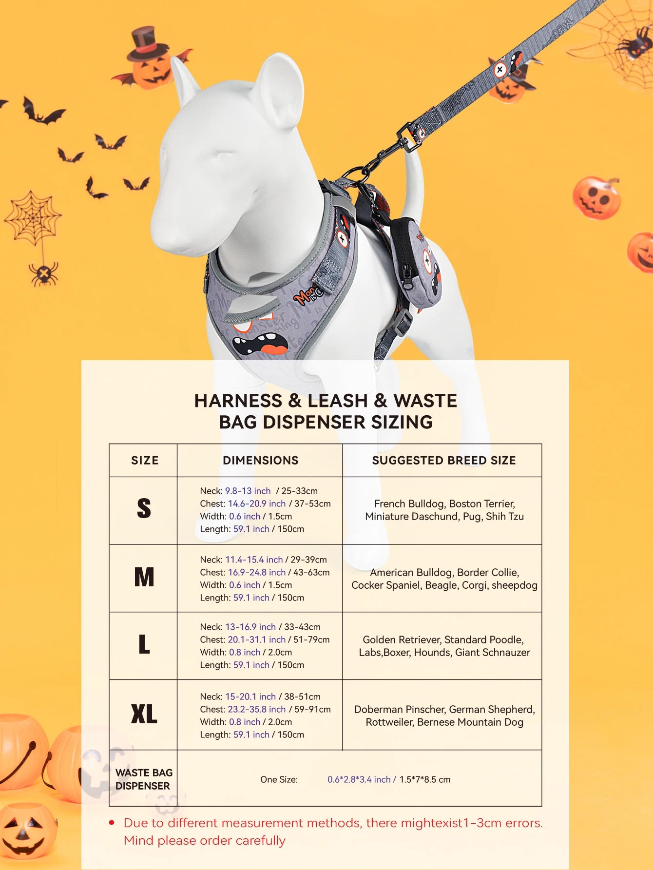 Package includes: X1 Luxury 3 Pieces Set: Monster is Coming: Luxury Fashion Harness ; Cute Leash and Poop bag (blue colour)